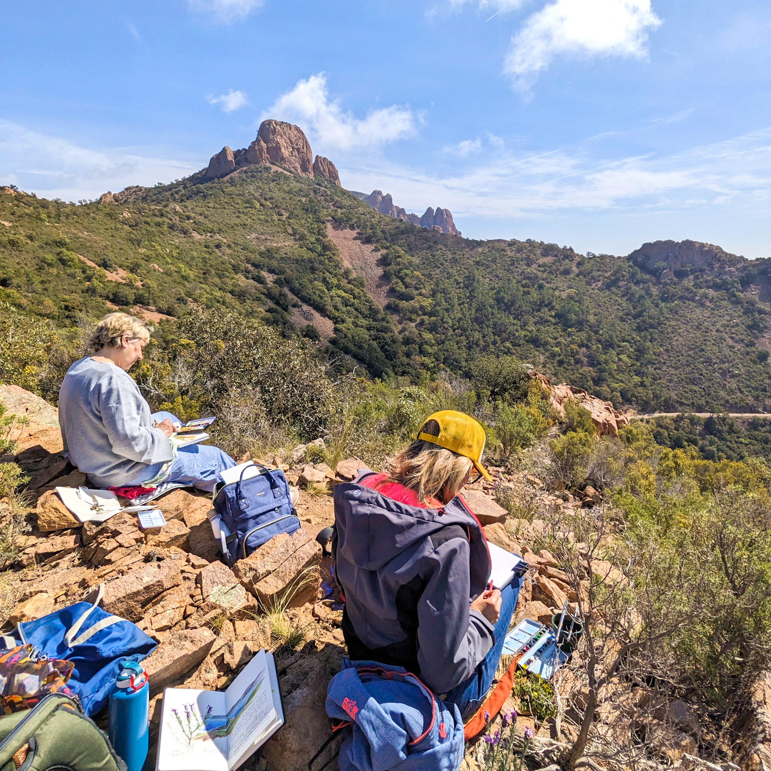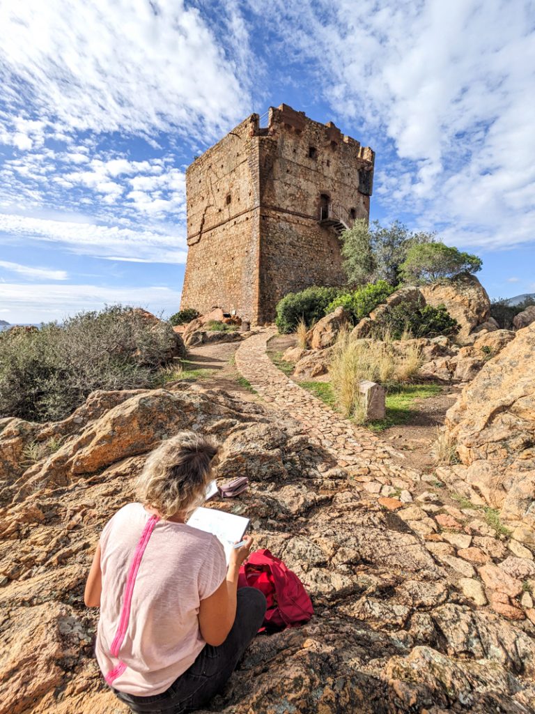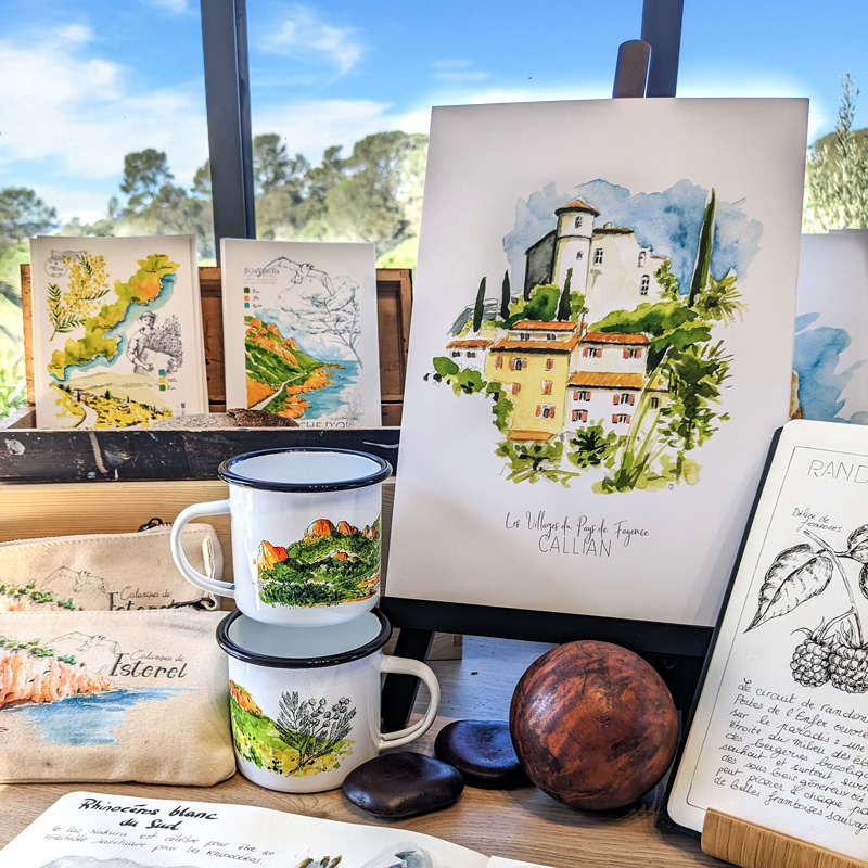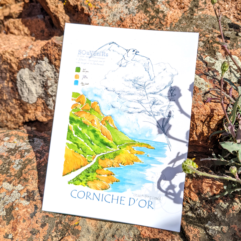 Passionnée du monde et des couleurs qui m’entourent, je vis au bord de la Méditerranée et au pied du Massif de l’Estérel et ses roches rouges.